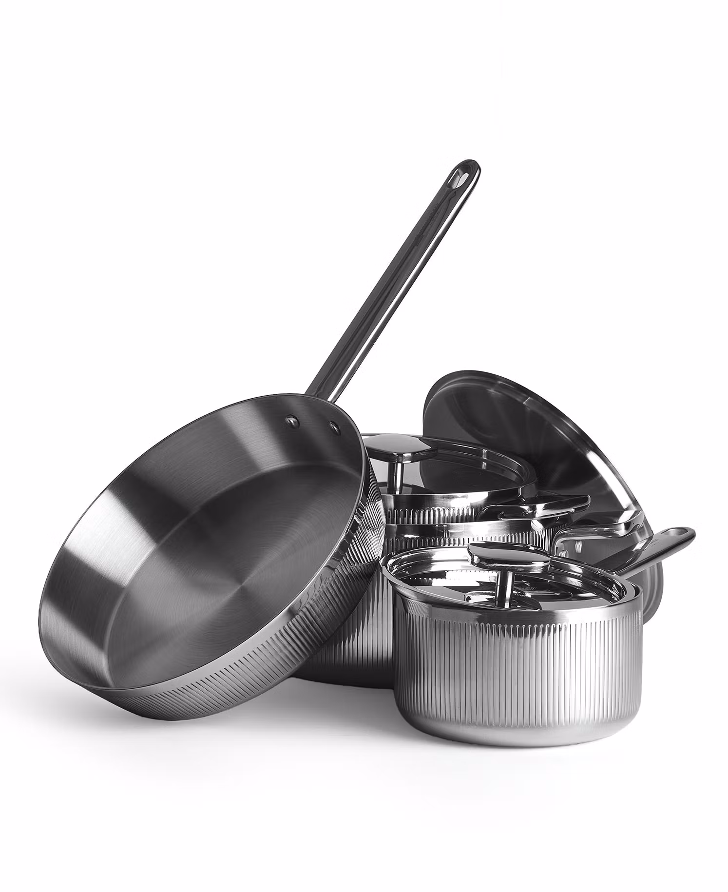 Design grytset är skapat för dig som söker ett köksset där uttrycksfull design möter pålitlig funktion. Det karakteristiska randiga mönstret är infällt direkt i stålet och ger serien ett exklusivt och genomarbetat utseende som drar blickarna till sig både på spisen och vid servering.